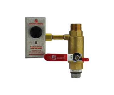 Stop guessing when and what auxiliary drain needs maintenance. By detecting even the slightest amount of water in the collection assembly, the COLLECTanDRAIN Model 5100ALBV water detector alarm alerts you when maintenance is needed. It provides a visual and audible alarm and can even be wired for remote notification to a Fire Control Panel or Building Management System. It's available as a standalone product that can be added to existing auxiliary drains or included on our pre-assembled auxiliary drains.